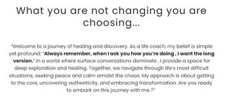 “Welcome to a journey of healing and discovery. As a trauma recovery and empowerment coach, my belief is simple yet profound: ‘Always remember, when I ask you how you’re doing , I want your long story.’ In a world where surface conversations dominate , I provide a space for deep exploration and healing. Together, we navigate through life’s most difficult situations, seeking peace and calm amidst the chaos. My approach is about getting to the core, uncovering authenticity, and embracing transformation. Are you ready to embark on this journey with me ?”